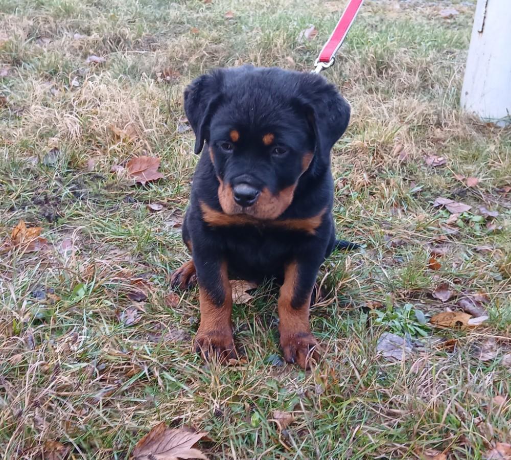 Wir haben 1 Rottweiler-Welpe- Rüden mit ADRK-Ahnentafel abzugeben. Er ist gesund und munter und warten darauf, ein neues Zuhause zu finden, wo er gemeinsam mit dem neuen Besitzer die große weite Welt entdecken darf. Die Rüde wird bei Abgabe geimpft sein und ist regelmäßig entwurmt . Unser Welpe kennt Kinder verschiedenes Alters und andere Tiere. Bei Interesse können sie sehr gerne einen Termin für ein Kennenlernen mit Ihm mit uns absprechen.