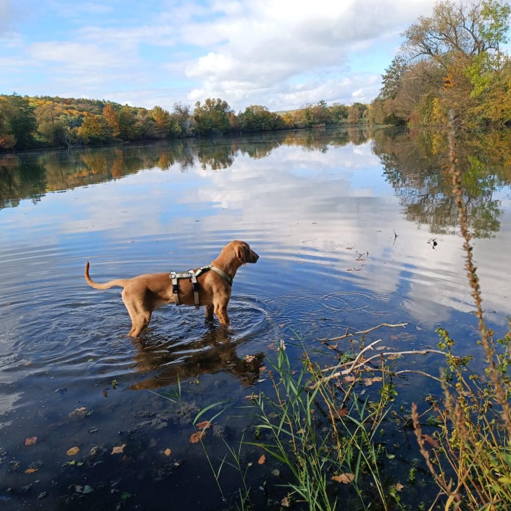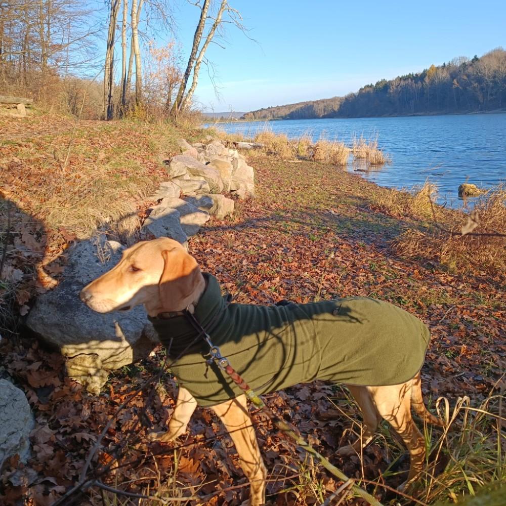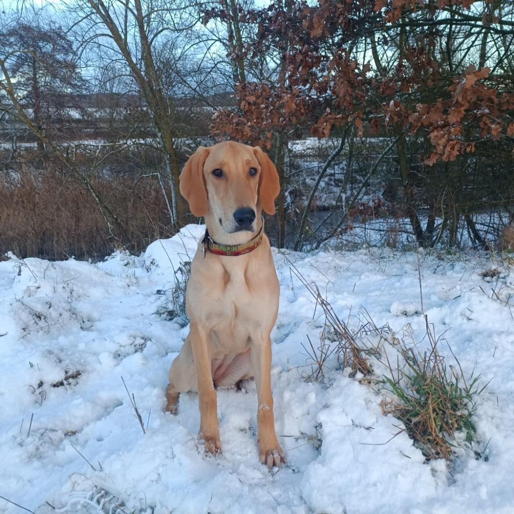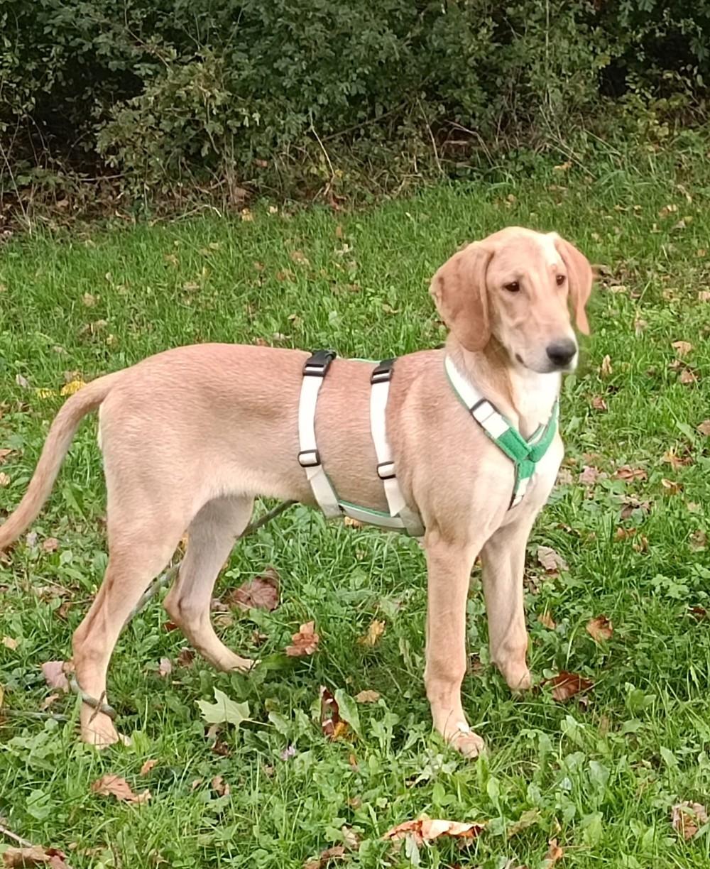 Ross, jetzt Canella, weiblich, Segugio Italiano Mischling, geboren am 15.04.2025, derzeit ca. 57cm, ca. 25kg, ist eine schlanke, bewegungsfreudige, soziale und intelligente Junghündin. Ross liebt den Kontakt zu ihren Artgenossen, spielt für ihr Leben gerne und zeigt sich bei Hundebegegnungen immer interessiert und aufgeschlossen. Wenn sie von ihren Artgenossen Grenzen gesetzt bekommt, akzeptiert sie diese bedingungslos. Canella hat schon viel gelernt in ihrem kurzen Leben: in der Hundeschule ist sie strebsam, kann auf Handzeichen "Sitz", "Platz" und "Bleib" (diese Zeichen hat sie nur nonverbal erlernt!). Sie ist sehr wissbegierig, lernt schnell und liebt den Kontakt mit ihren Menschen. Am Apportiertraining mit dem Dummy zeigt sie großes Interesse und sie hat auch gelernt an ihrem Platz zu bleiben , bis sie an ihr Futter darf! Beim Autofahren fährt sie am Liebesten in einer Box mit und verhält sich dabei ruhig und gelassen.