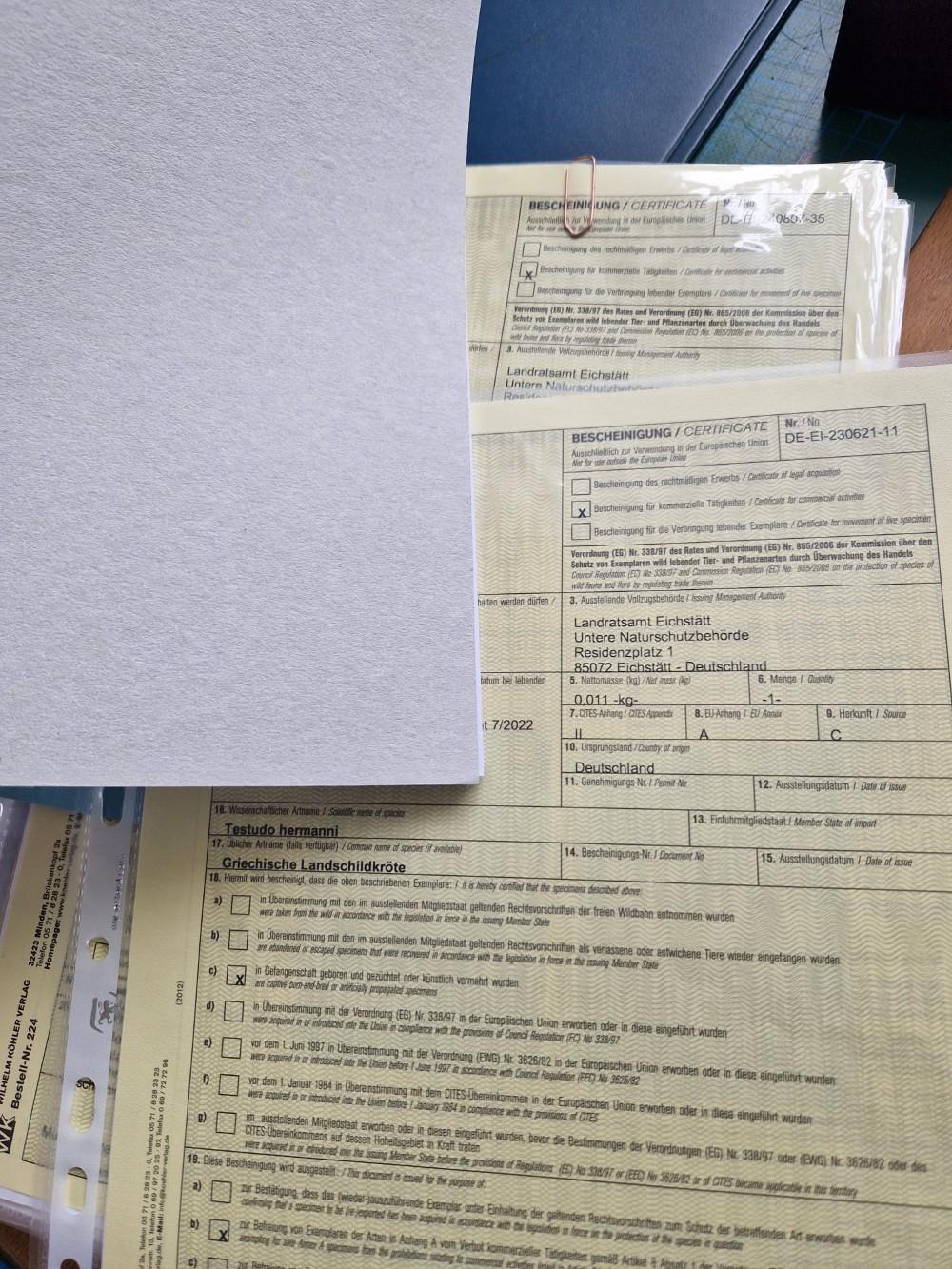 Alle Tiere besitzen gültige und aktuelle Cites / Herkunftsbescheinigungen.