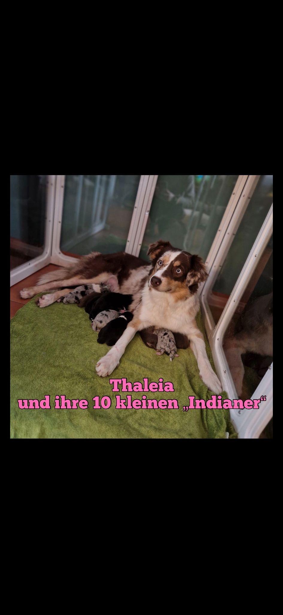 Unsere 10 supersüssen Australian Shepherd Welpen von unserer Thaleia suchen ihr Für-immer-Zuhause ab dem 28.05.2026.